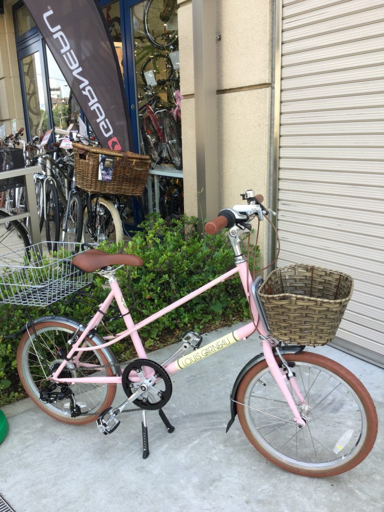 細いクロモリフレームのかわいいミニベロで、乗り降りがしやすい設計になっています。