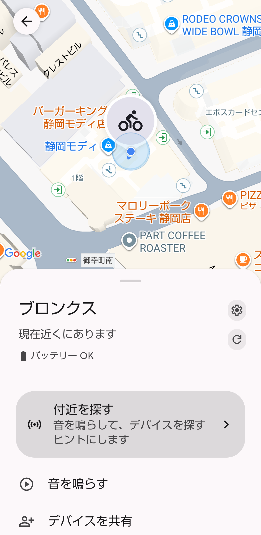 かなり精度が高く、ここまで特定できるなら駐輪場のどのあたりに停めたかもわかりそうです。