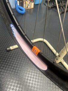リムテープ上と、タイヤビード部位にシーラントを手塗りしてあげると