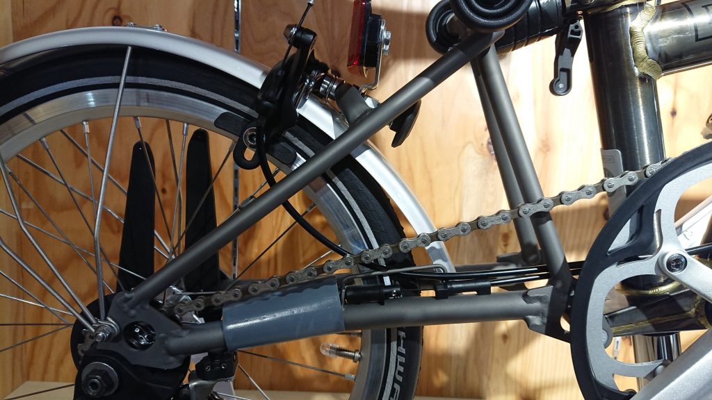 この問題を解消するために、ブロンプトンは部分的にチタンを組み込むことでコストダウンと軽量化、乗り味の良さを実現しております。