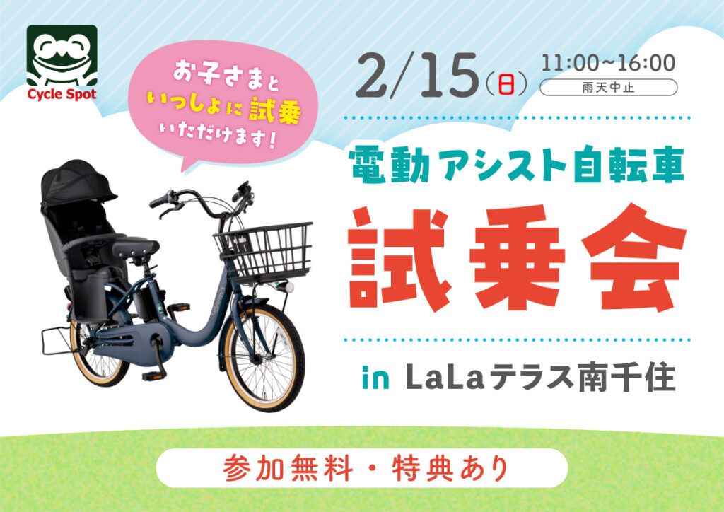 春の新生活応援企画!人気モデルが勢揃いの「電動アシスト自転車試乗会 in LaLaテラス南千住店」開催のお知らせ2026/02/15(日)