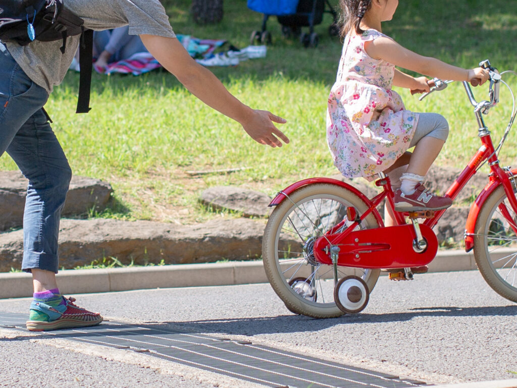 キックバイクは道路交通法上「遊具」扱いとなるため、公道(車道・歩道)での走行は禁止されています。