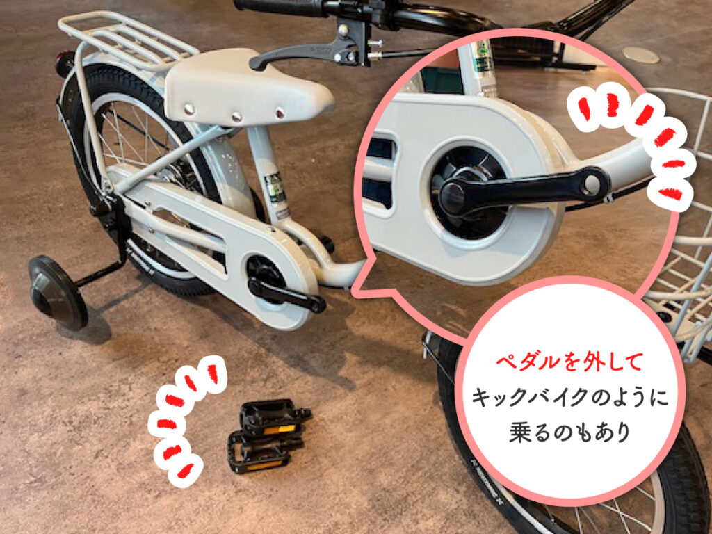 補助輪付き自転車もペダルを外してキックバイクのように乗るのもあり。