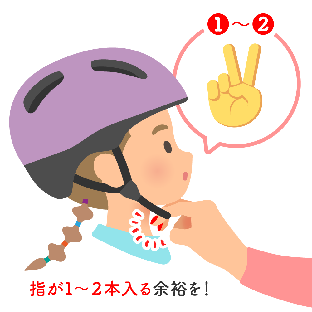 この時あごひもとあご下の間に大体指1、2本分が入る余裕があると動いても苦しくなりにくいです