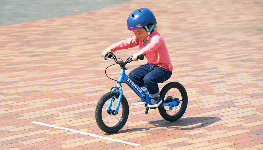 ブレーキのあるキックバイクや自転車ではブレーキを握り、