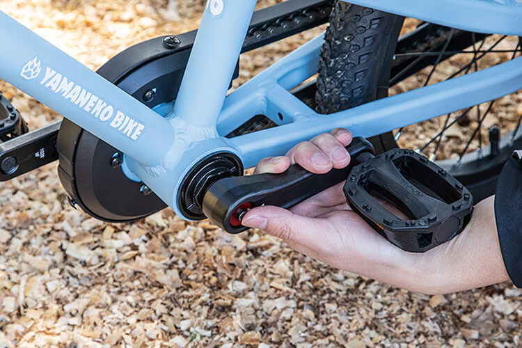 ペダルを回しやすいよう、短めのクランクを採用しています。