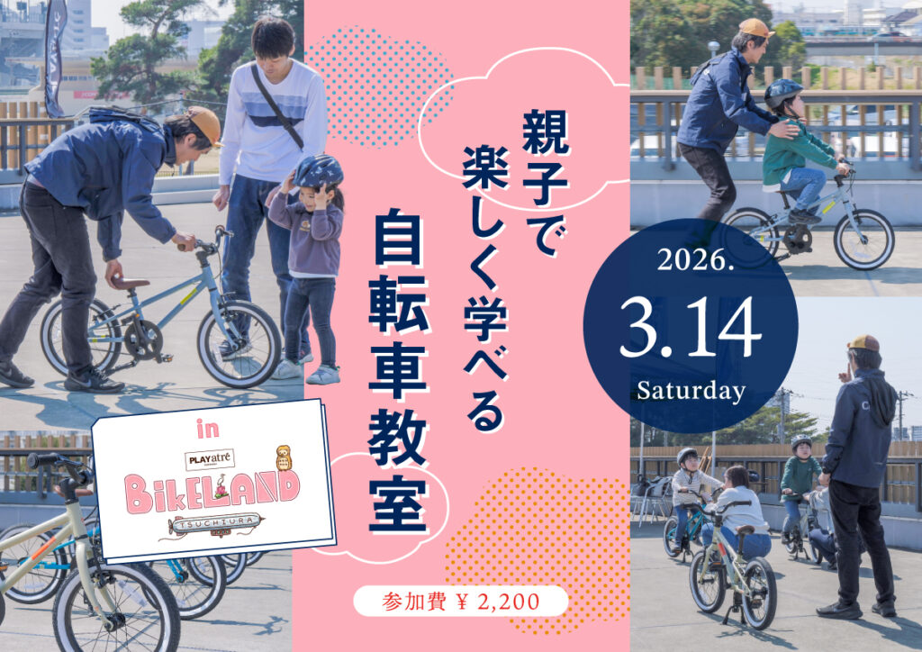 この度、3月14日(土)に霞ヶ浦総合公園で開催される⾃転⾞のお祭り「BIKELAND 土浦」にて、「親子で楽しく学べる自転車教室」を開催いたします!