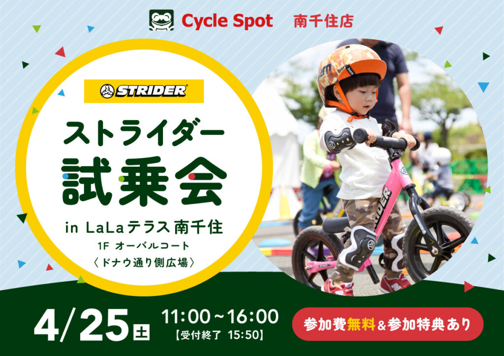 初めてでも大丈夫!ストライダーで一緒に遊ぼう!「ストライダー試乗会 in LaLaテラス南千住」開催のお知らせ2026/04/25(土)