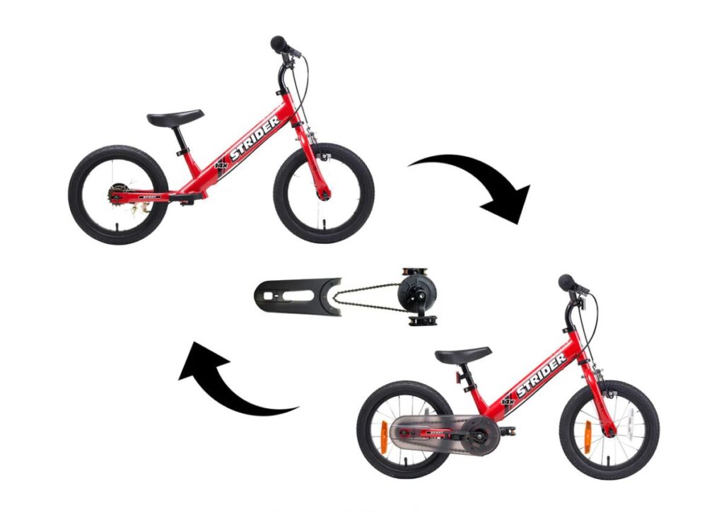 ペダルの装着が可能なストライダー14xは、「乗る・こぐ・走る」をこれ1台で体験できるステップアップモデルです!キックバイクからそのまま自転車へ移行できるため、補助輪外しデビューにもおすすめの1台です。