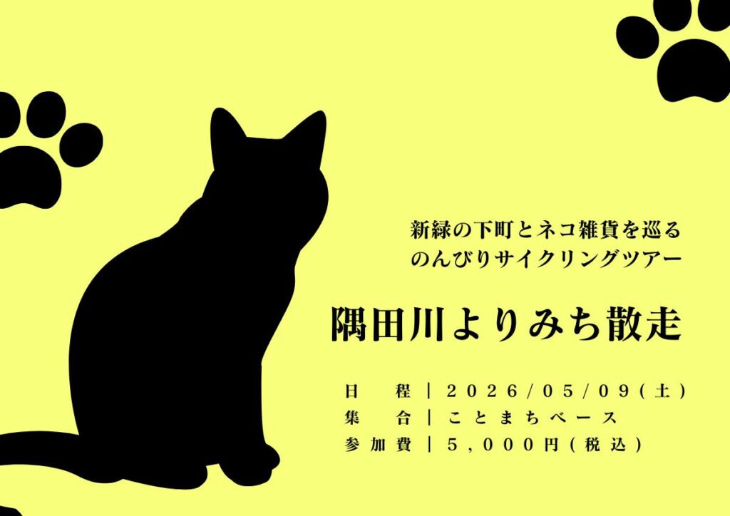ネコみたいに気ままに。新緑の下町とネコ雑貨を巡るゆるポタ旅「隅田川よりみち散⾛」参加者募集中!2026/05/09(土)