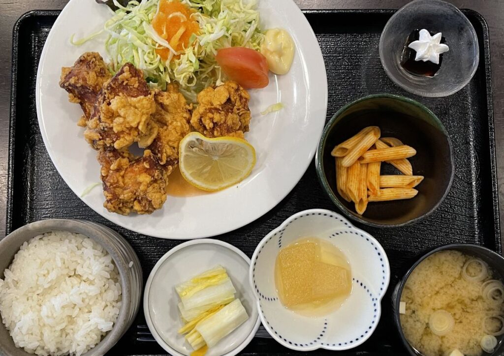 ランチは地元で愛される定食屋さんへ。ボリューム満点のあたたかいごはんで、午後のライドに向けてしっかりエネルギーチャージ!