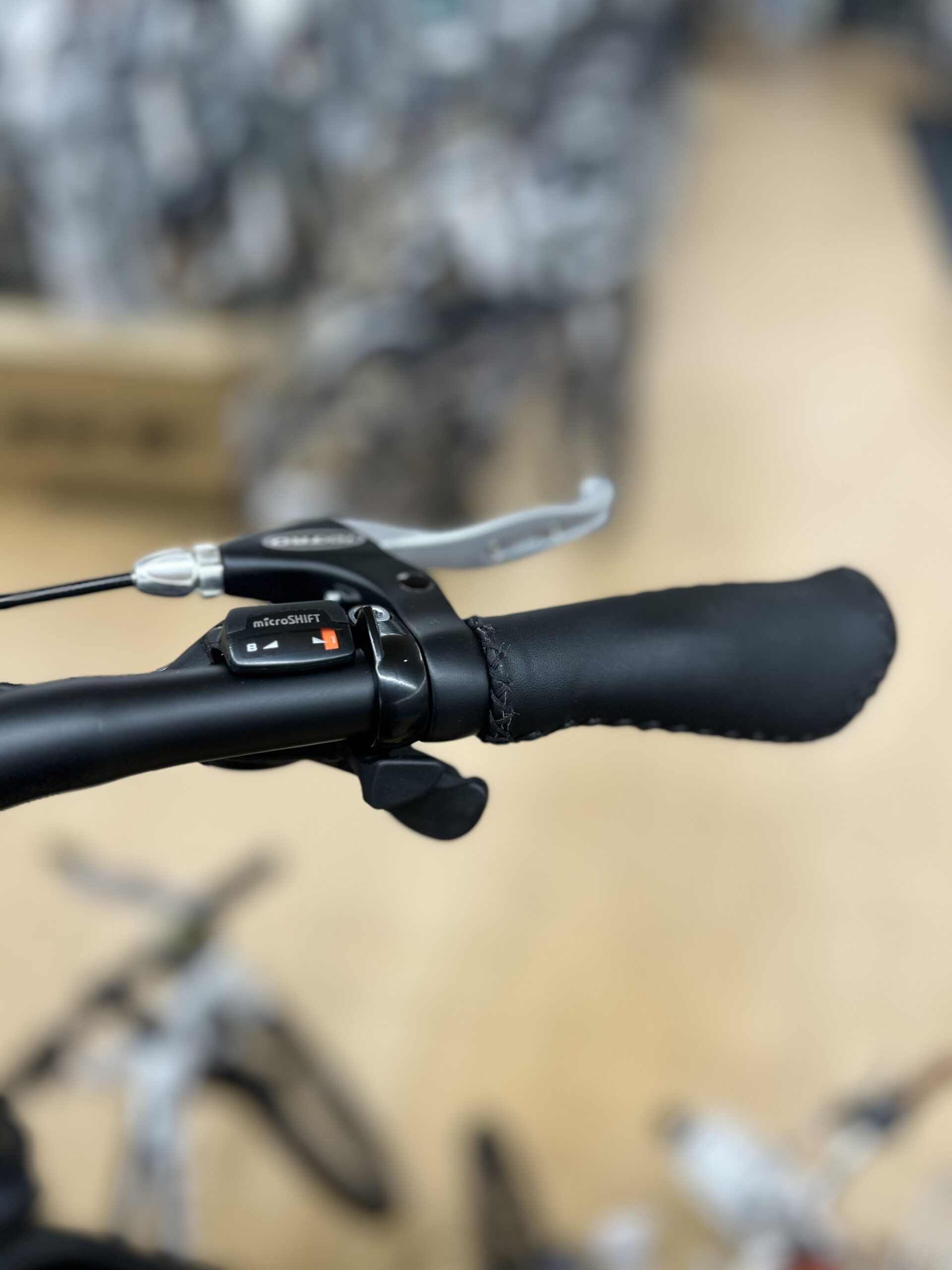 グリップは革製でベルはブレーキレバー一体型なのでスマート